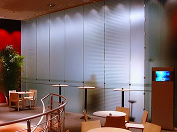 Glastrennwände mit spezieller Bedruckung im Verbundglas hergestellt, geliefert und mit entsprechenden Unterkonstruktion montiert