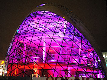 „Glasluster“ Beleuchtungsanlage und Lichthof  mit Scheiben bis 450 x 225 cm von innen in bis zu 14 m Höhe montiert
